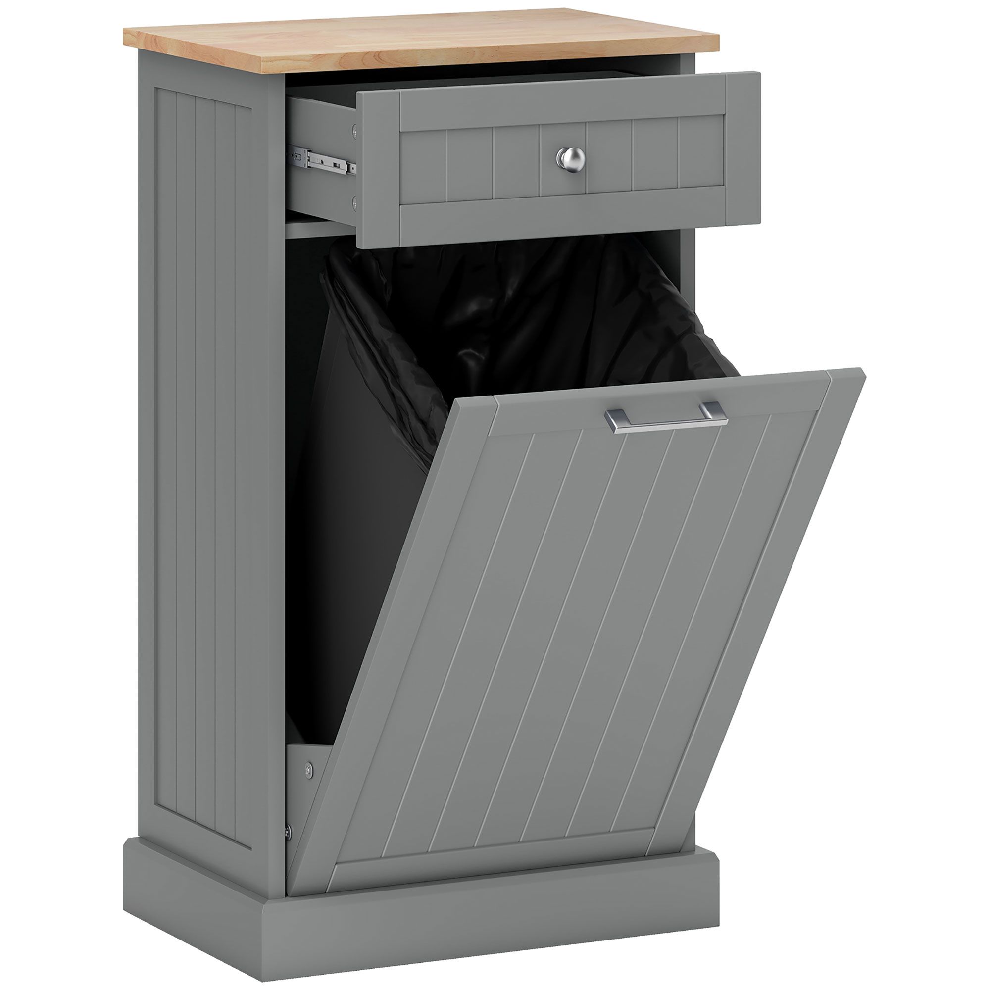 HOMCOM Tilt Out Trash Bin Cabinet, Gray, Freestanding Recycling Can Holder with Drawer HOMCOM Tilt Out Trash Bin Cabinet, Gray, Freestanding Recycling Can Holder with Drawer HOMCOM Tilt Out Trash Bin Cabinet, Gray, Freestanding Recycling Can Holder with Drawer